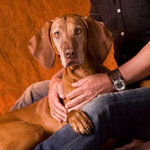 2008Relatie mens en dier, Man zittend en hond liggend, kleur